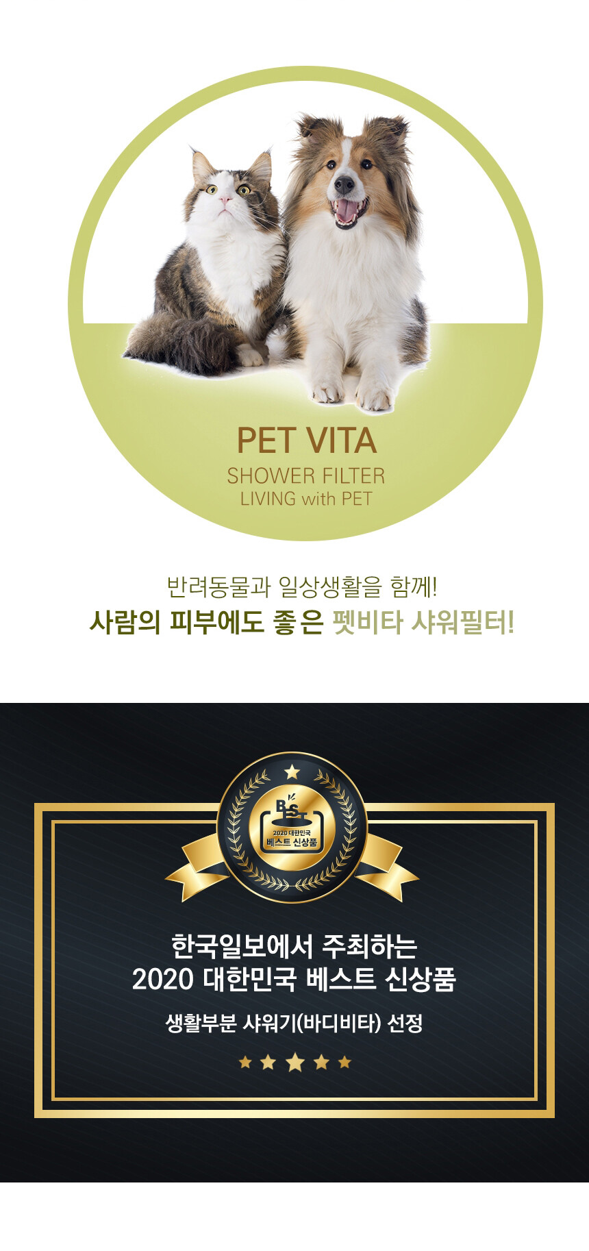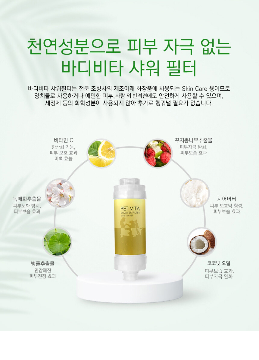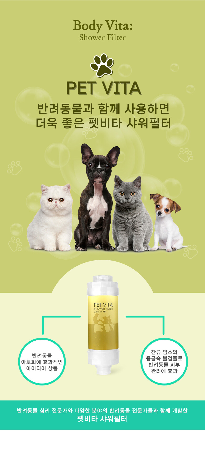 반려동물의 피부보호와 모질개선을 위한 펫샤워필터 펫비타 입니다.