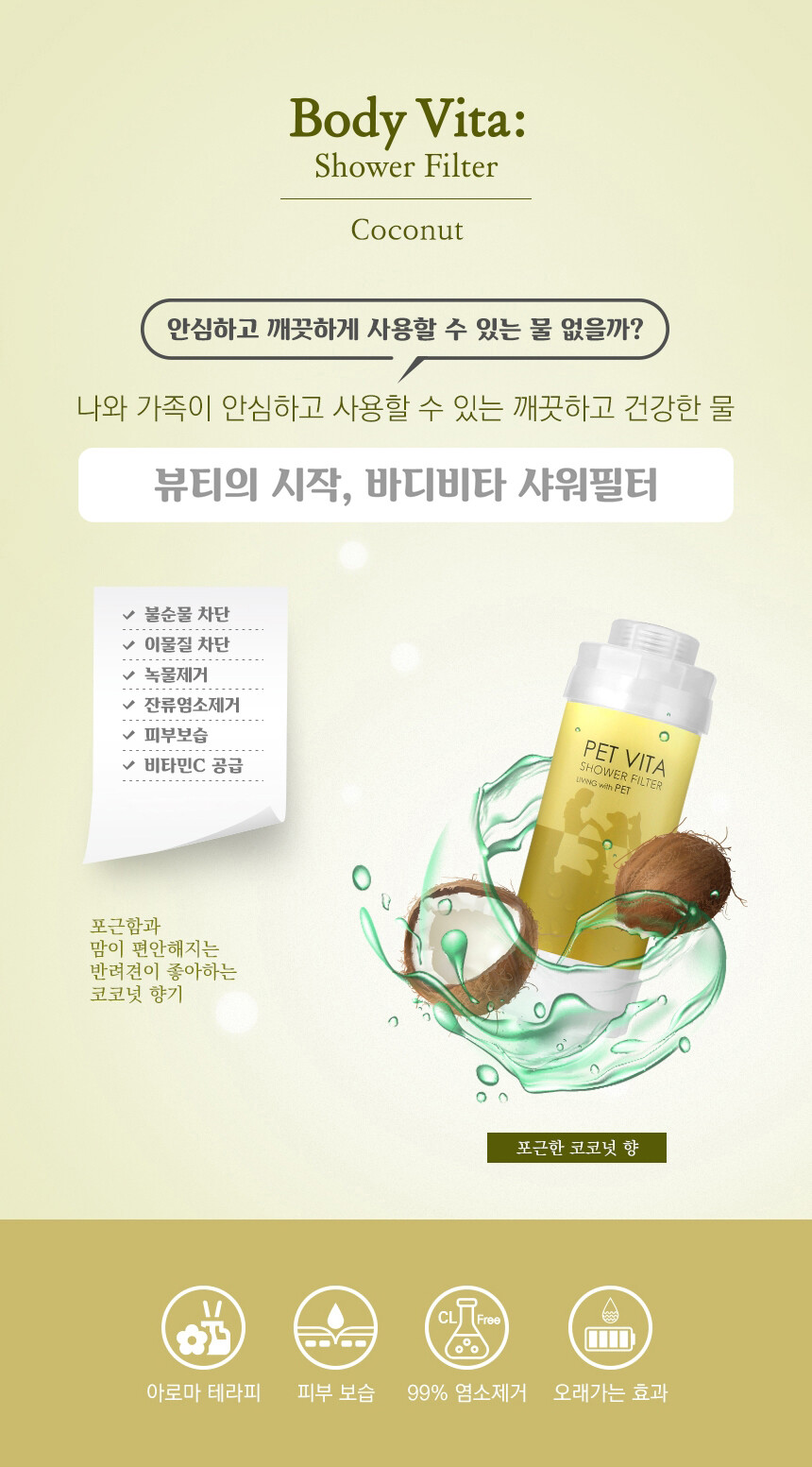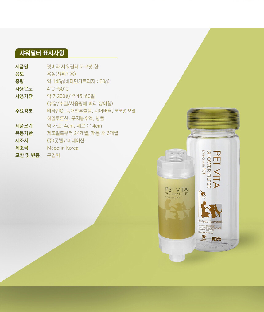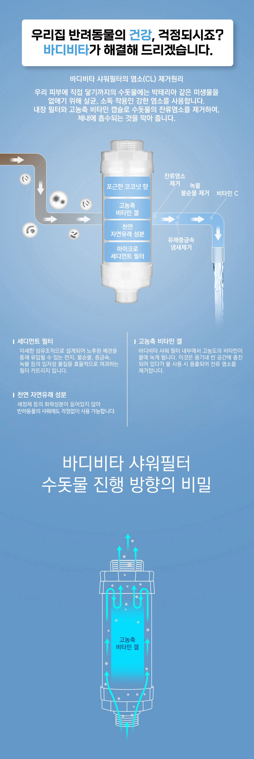 반려동물의 피부보호와 모질개선을 위한 펫샤워필터 펫비타 입니다.